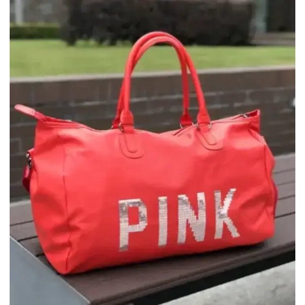 Оригинальная женская дорожная сумка PINK благодаря своим оптимальным размерам очень вместительная. Все необходимые вещи свободно поместятся внутри!