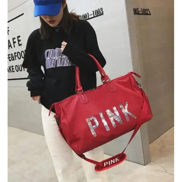 Данную модель можно использовать для личных вещей на недалекие поездки, прекрасно подойдет для студентов и для путешествий. Сумка ручная кладь изготовлена из высококачественной ткани оксфорд. Внешняя сторона украшена оригинальной надписью «PINK», поэтому сумка очень стильно выглядит. Сумка для путешествий имеет удобные две ручки и широкий длинный ремень, поэтому можете выбирать, как Вам удобно ее носить.